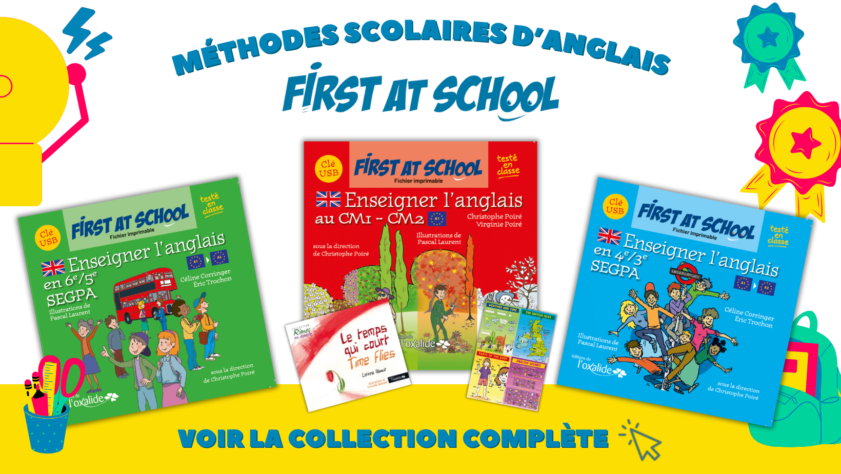 Retrouvez les fiches pour le professeur, les fiches élèves, les cartes-images (flashcards), les fiches d’évaluation élèves et toujours un CD offert comportant des outils complémentaires parmi lesquels des documents sonores indispensables pour rendre les séances vivantes.